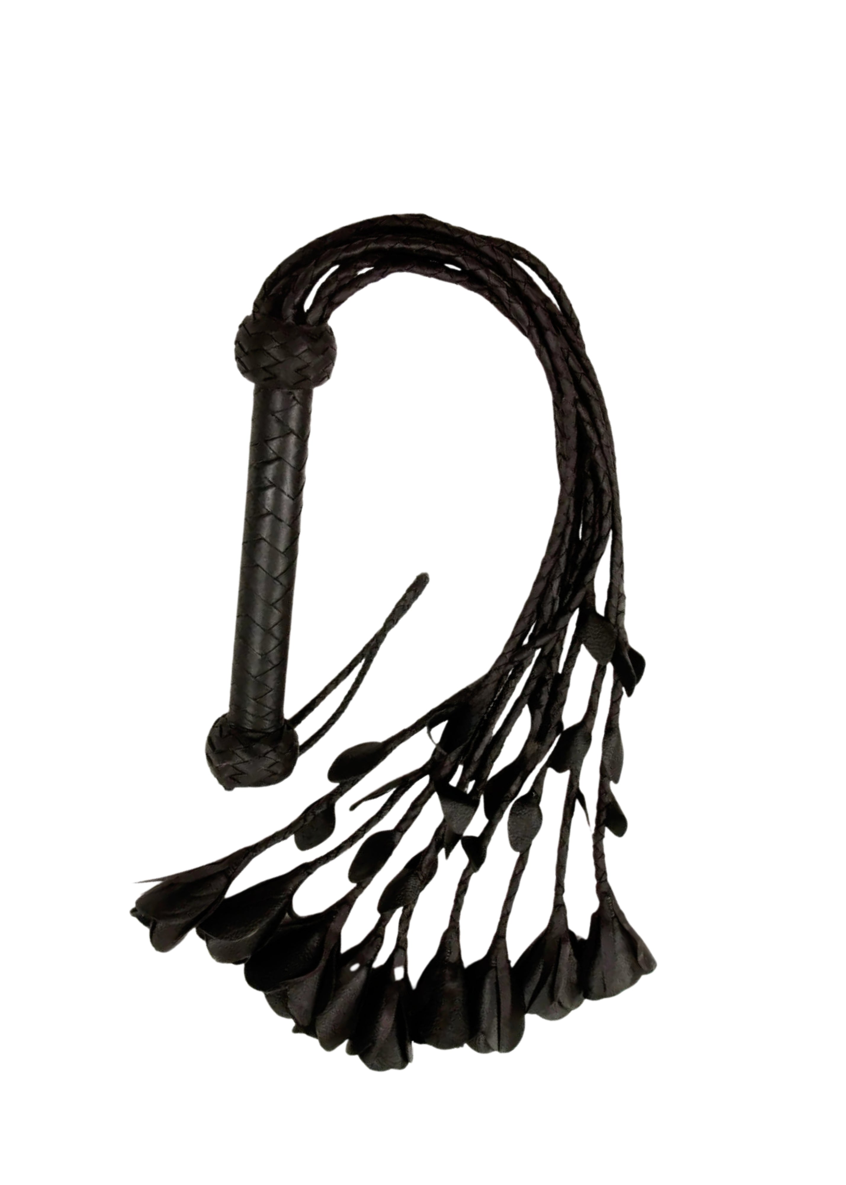 Real Genuine Cow Hide Leather Flogger 9 Braided Falls & Black Rose Heavy Duty Cat-o-nine Tails Flogger