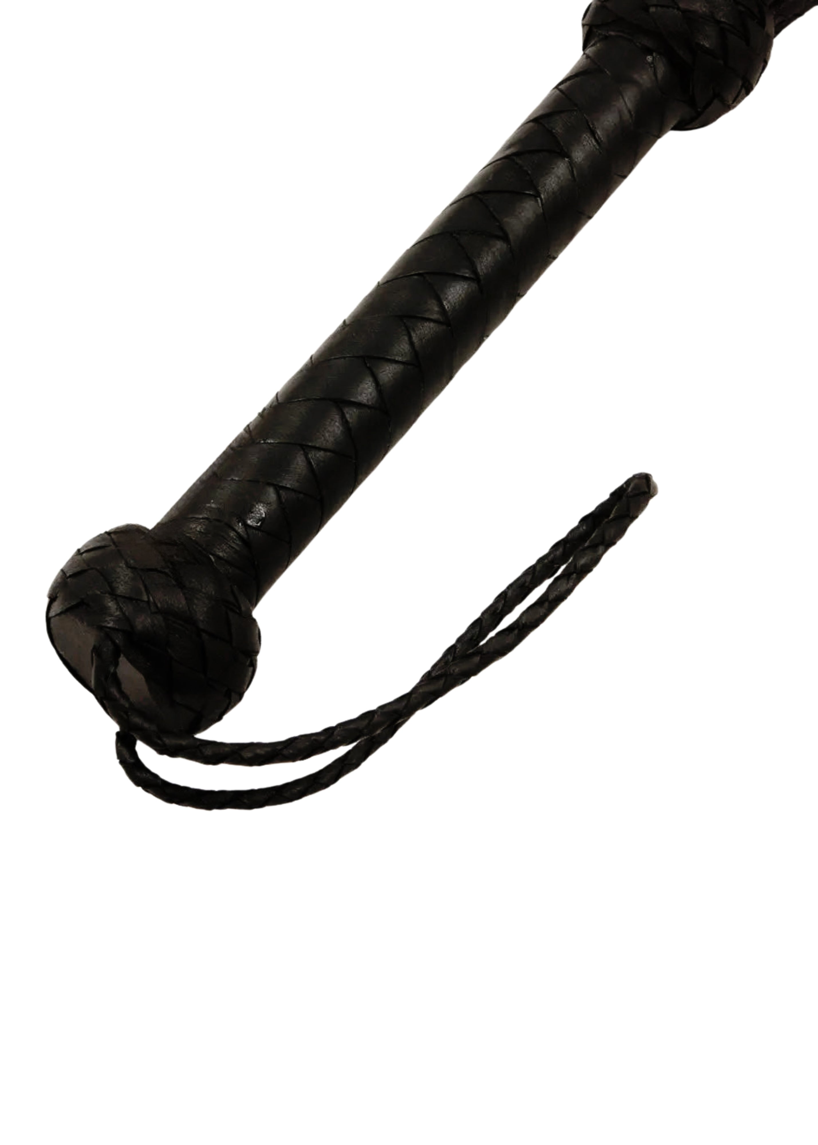 - Nine inches long handle. Real Leather Braiding over the wood handle to crafts a balanced whip.